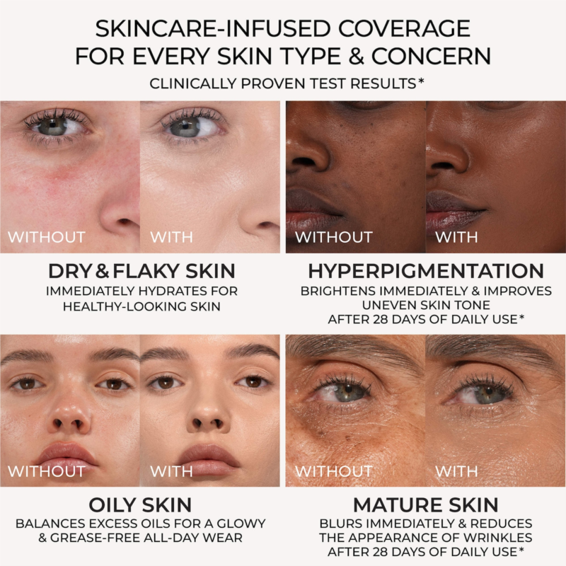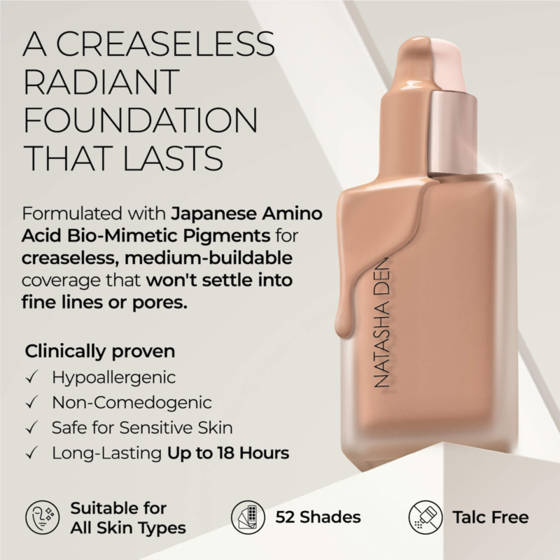 What Else You Need to Know: Formulated with Korean technology and enhanced with Japanese Amino Acid Bio-Mimetic Pigments, this hypoallergenic, noncomedogenic formula delivers a flexible, creaseless, and luminous finish. Infused with actives, it visibly brightens hyperpigmentation, blurs uneven texture, and targets signs of aging.