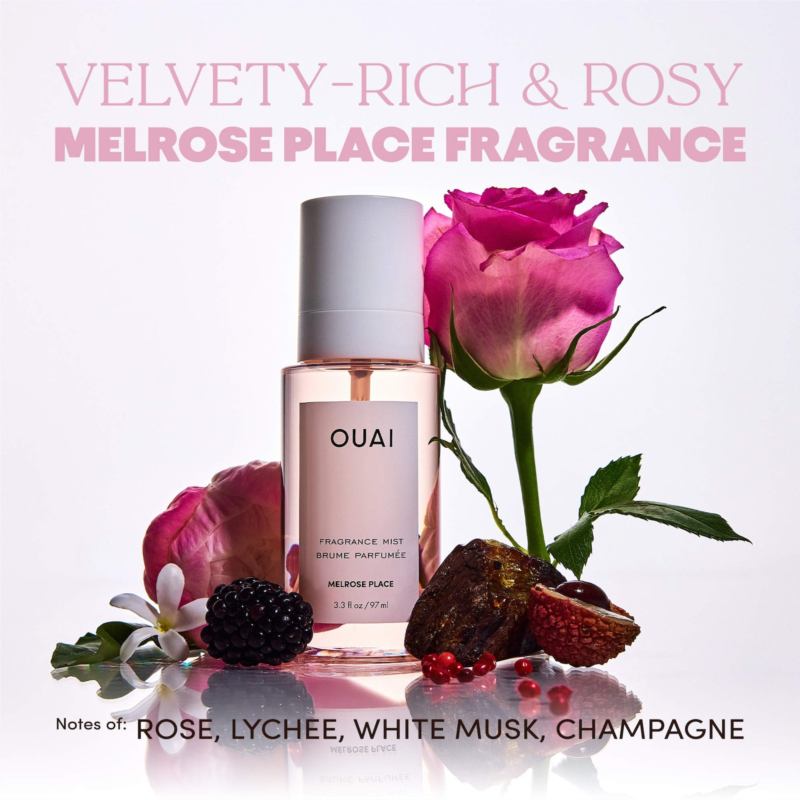 Fragrance Description: Melrose Place Hair & Body Mist is your one-OUAI ticket to Los Angeles. It will have you smelling like you’re almost famous with notes of rose, lychee, berry, and pink peppercorn. Spray it from head to toe whenever you want a get-a-OUAI.