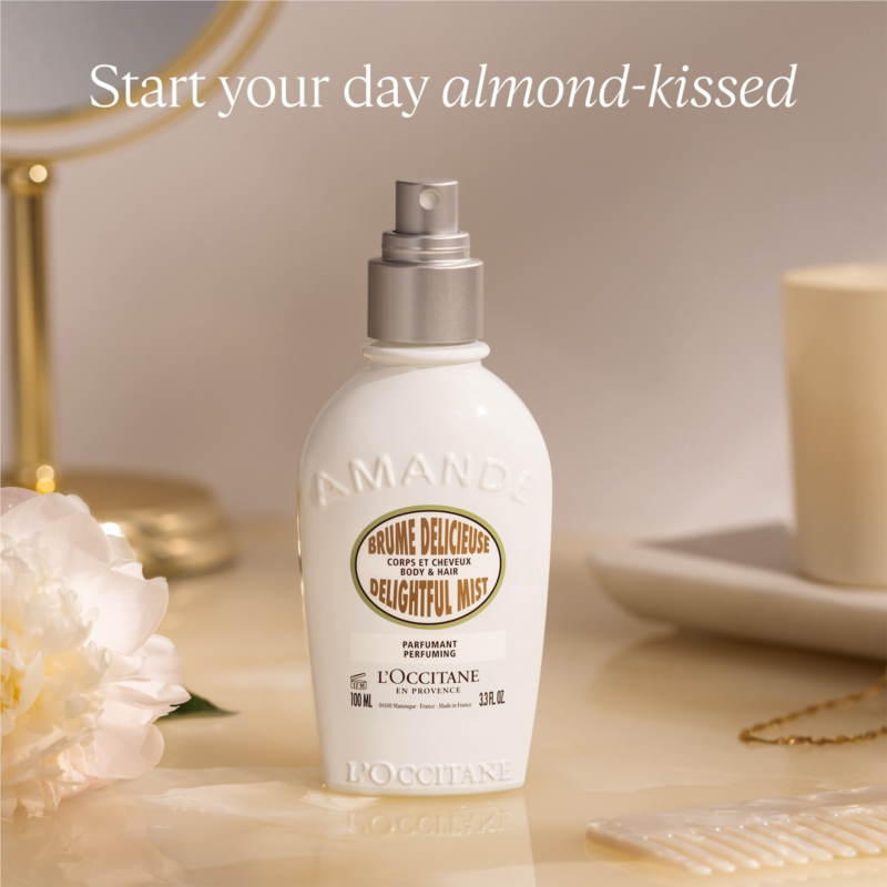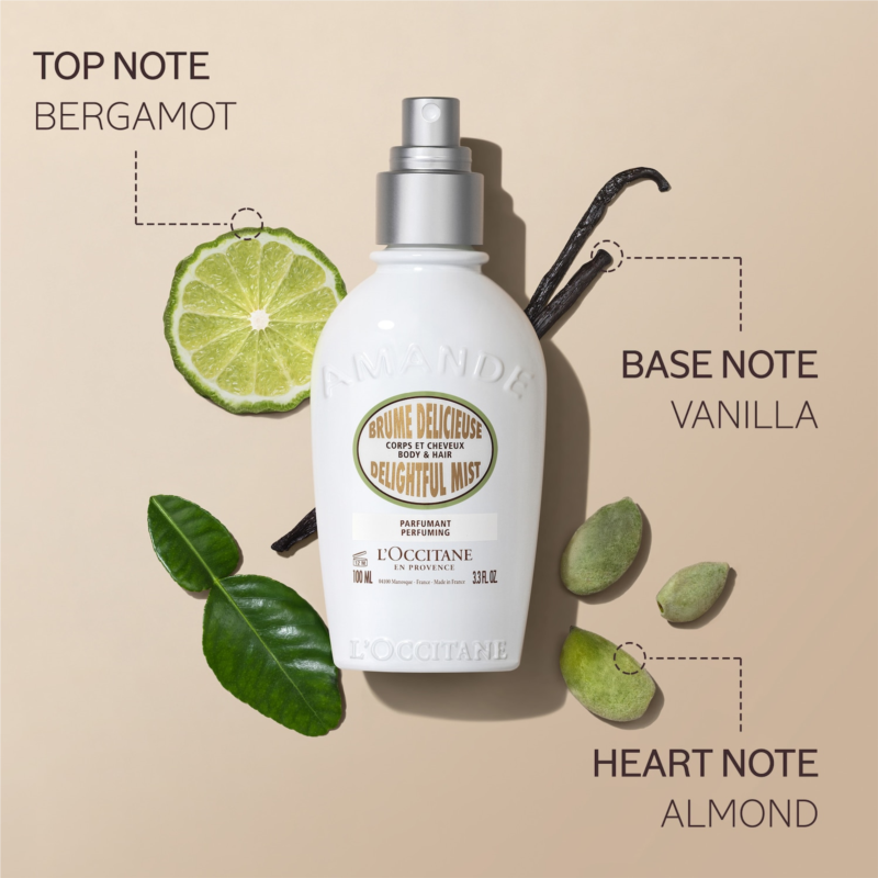 What it is:?A lightweight, non-sticky hair and body mist that envelopes your senses in a comforting gourmand scent of fresh almonds and warm vanilla for a quick refresher.