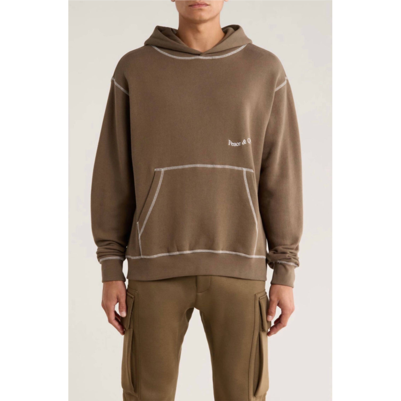 [US] Museum of Peace & Quiet wavy logo stitch hoodie in brown