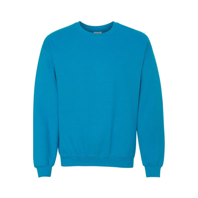 8 oz./yd (US) 13.3 oz./L yd (CA), 50/50 cotton/polyester, 20 singles. Heather Sport colors - 60/40 polyester/cotton. Safety Green - Compliant with ANSI / ISEA 107. 2-end midweight fleece fabric. Classic fit. Air jet yarn for softer feel and reduced pilling. Double-needle stitching at shoulders, armholes, neck, waistband and cuffs. 1x1 rib with spandex for enhanced stretch and recovery. Tear away label.