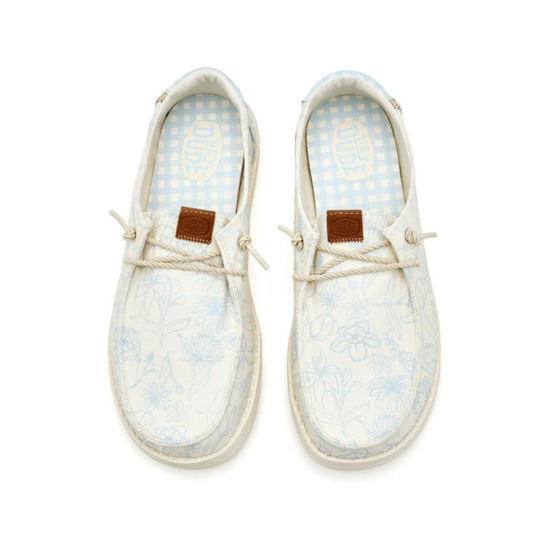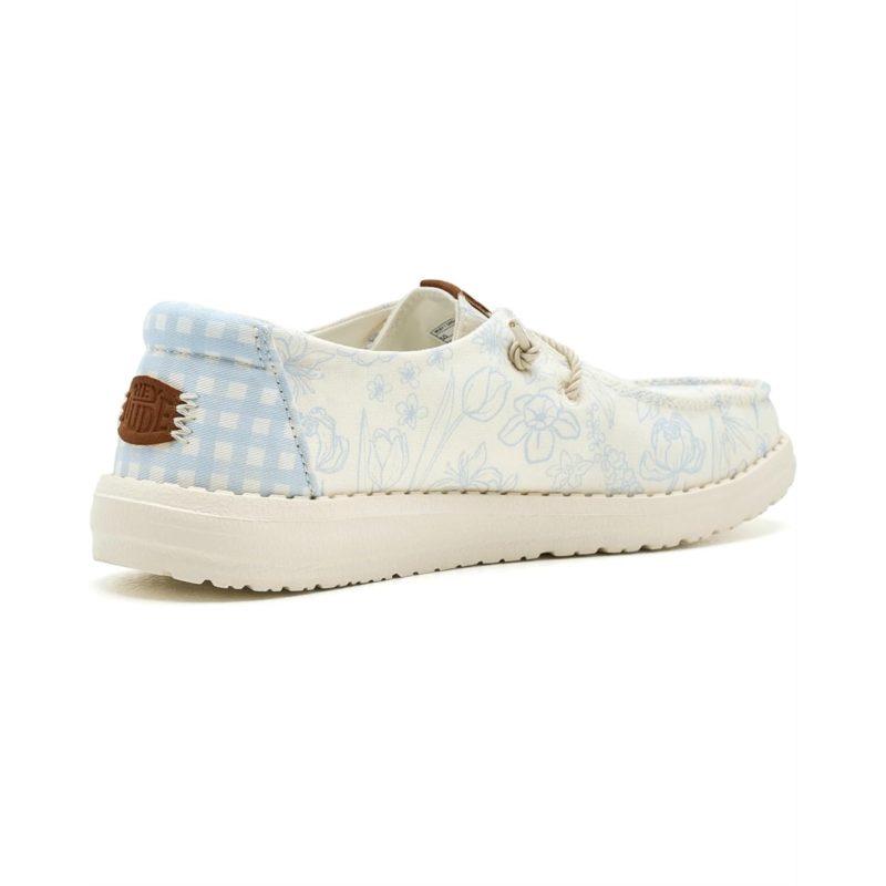 - The Hey Dude Kids Wendy Print is a lightweight slip-on designed with comfort and freedom of movement in mind. Built with a rounded toe design and Flex & Fold technology, it supports healthy feet by allowing a natural range of motion. The canvas upper pairs with a soft cotton lining for breathable wear, while the easy-going construction makes it perfect for everyday adventures.