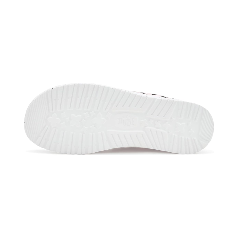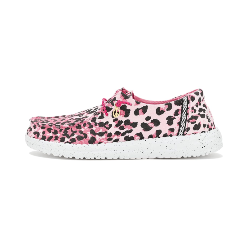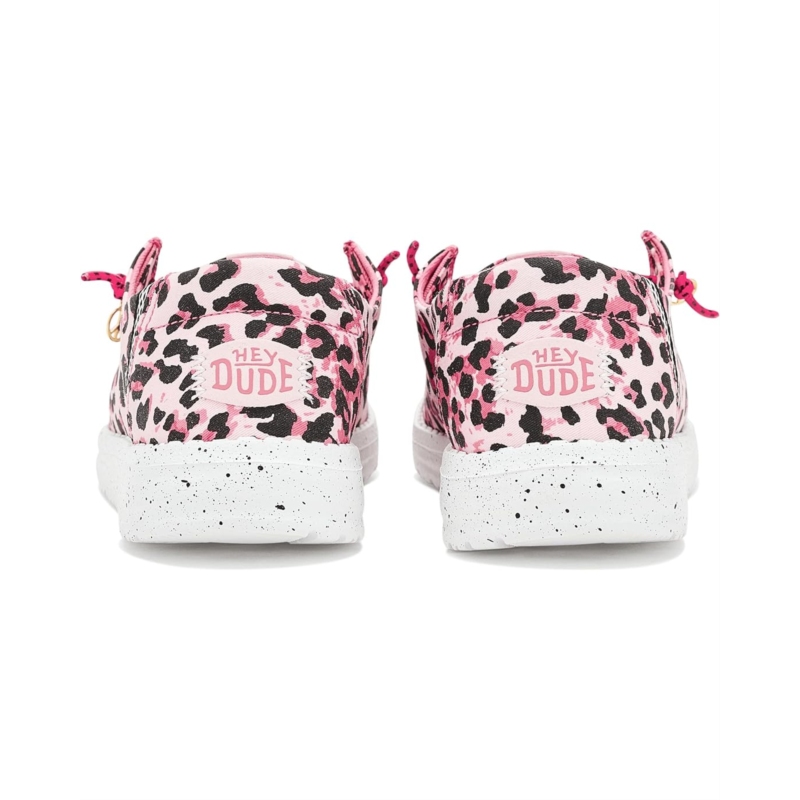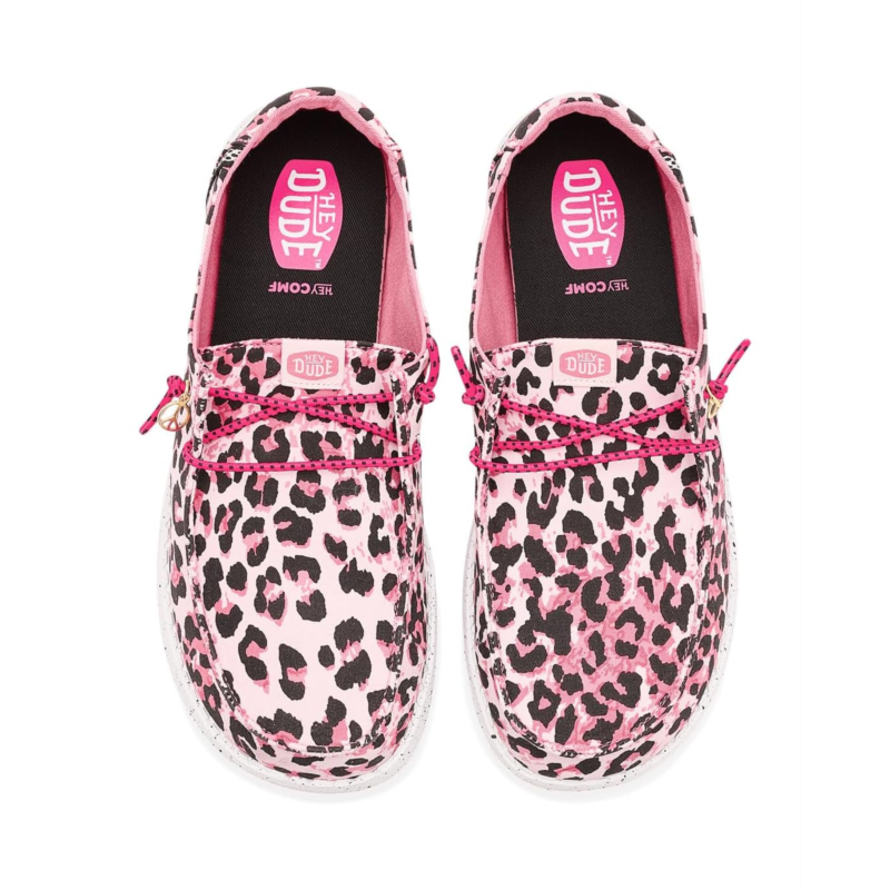- The Hey Dude Kids Wendy Print sneakers are styled with an allover leopard print that adds a vibrant twist to your kid''s outfits. These casual sneakers are made of a cotton upper, an ethylene vinyl acetate insole, and a cotton lining. Their elastic laces offer a secure fit, while the Flex & Fold design supports healthy feet with their unique shape, giving complete freedom of movement. These low-top sneakers are perfect to pair with your kid''s different outfits and styles.