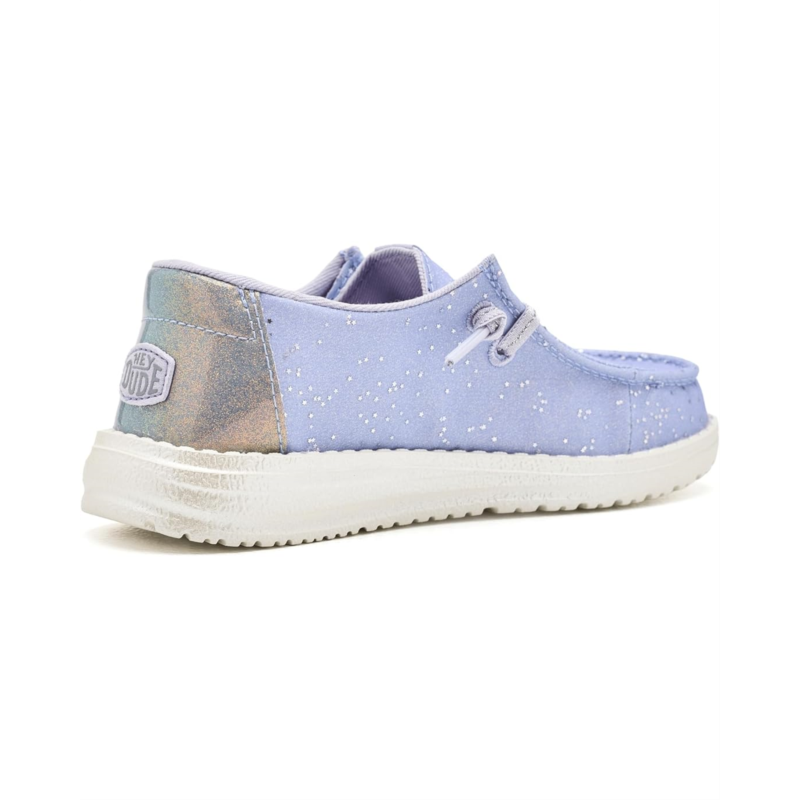- The Hey Dude Kids Wendy Print Loafer is a lightweight slip-on designed with comfort and freedom of movement in mind. Built with a rounded toe design and Flex & Fold technology, it supports healthy feet by allowing a natural range of motion. The polyester upper pairs with a soft cotton lining for breathable wear, while the easy-going construction makes it perfect for everyday adventures.