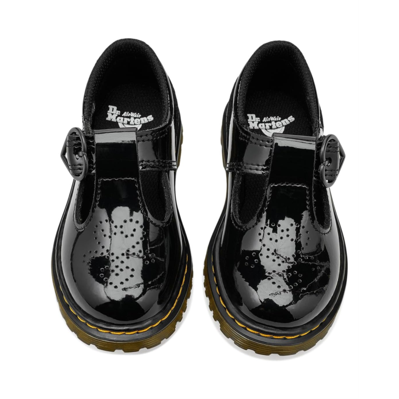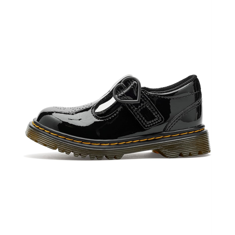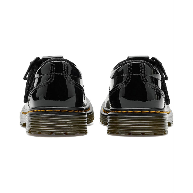 - The Dr. Martens Kid''s Polley II Bow brings iconic style to tiny trendsetters with a rebellious spirit. Crafted from soft-yet-durable Softy T leather, these mini Mary Janes are made to take on the playground in style, no painful break-in period required. The signature air-cushioned outsole supports all-day comfort. The adjustable hook-and-loop strap makes dressing easy for growing kids and busy parents alike. Designed to handle every stomp, skip, and step in total comfort and cool, these shoes are where toughness meets cuteness.