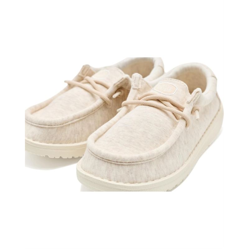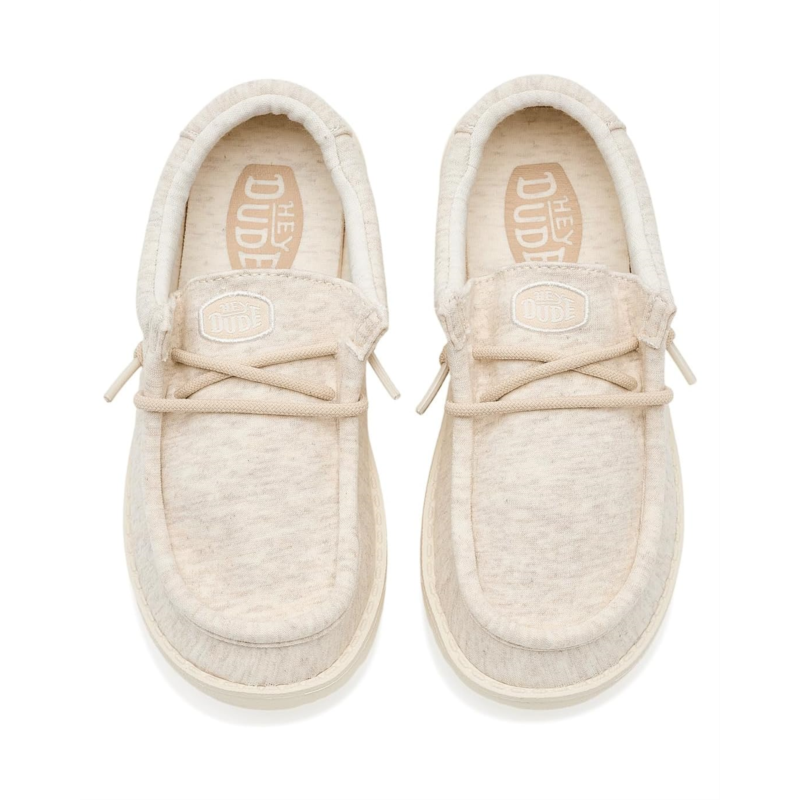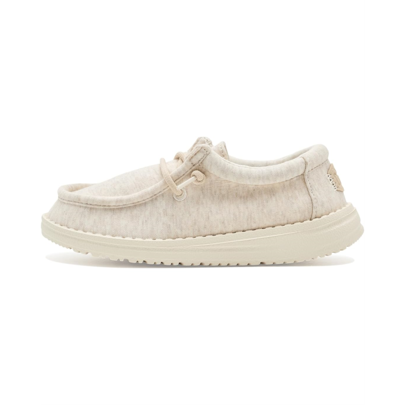 - Made for movement, comfort, and fun - the Hey Dude Kids Wally Stretch Jersey Shoes are everyday essentials for little explorers. Crafted with a stretchy jersey upper that moves with every step, these slip-on shoes keep things easy from playground to playdate. Flex & Fold technology supports healthy feet with its unique shape giving complete freedom of movement.