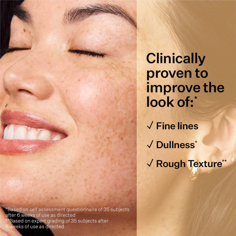 - Retinol: Smooths the look of rough, uneven texture and fine lines.