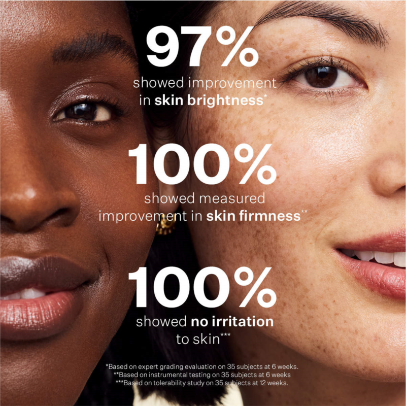 - 97% showed improvement in skin brightness after 6 weeks