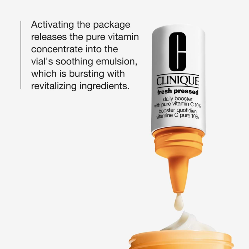 What it is:A unique booster that harnesses the full power of pure, fresh vitamin C at the highest concentration to visibly brighten, even, and retexturize skin.