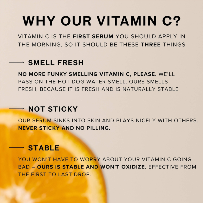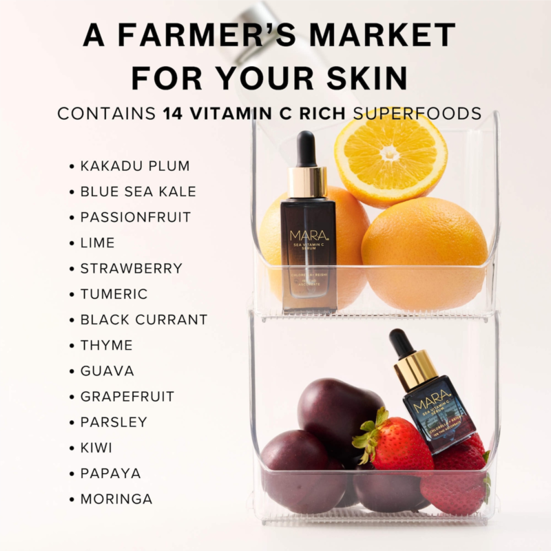 - Vitamin C Supercharge Blend: A blend of 14 natural vitamin C-rich fruits and spices to dramatically brighten and glow.