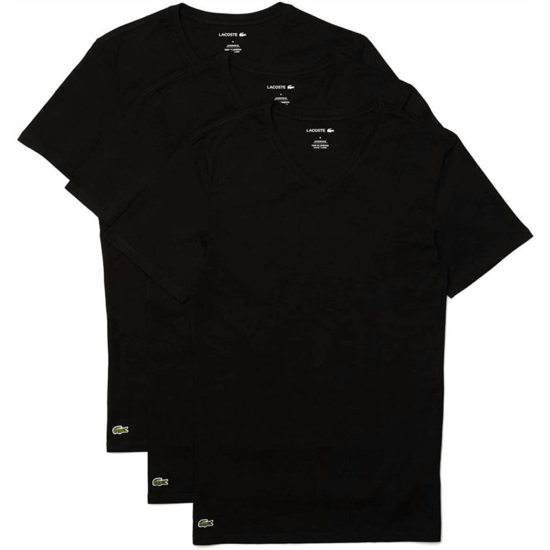 [US] LACOSTE mens essentials 3-pack cotton slim fit v-neck t-shirts in black