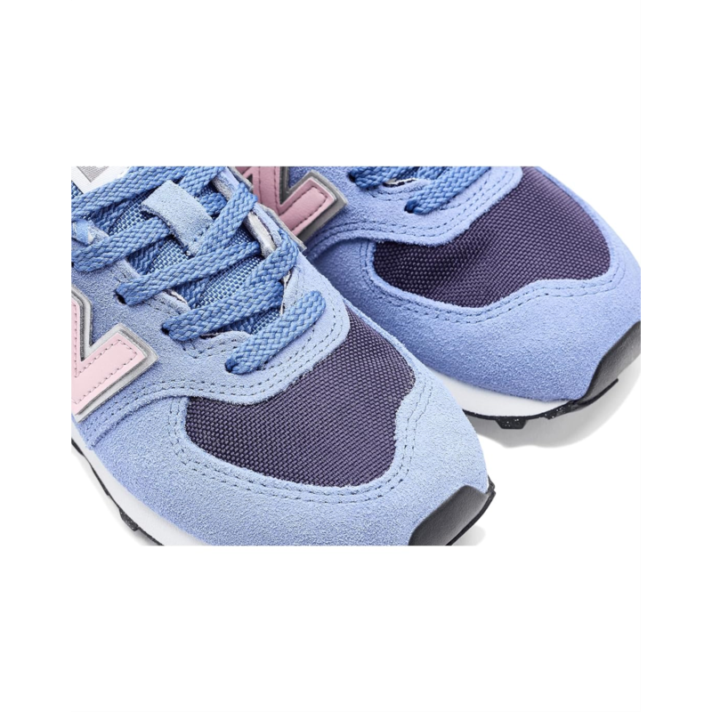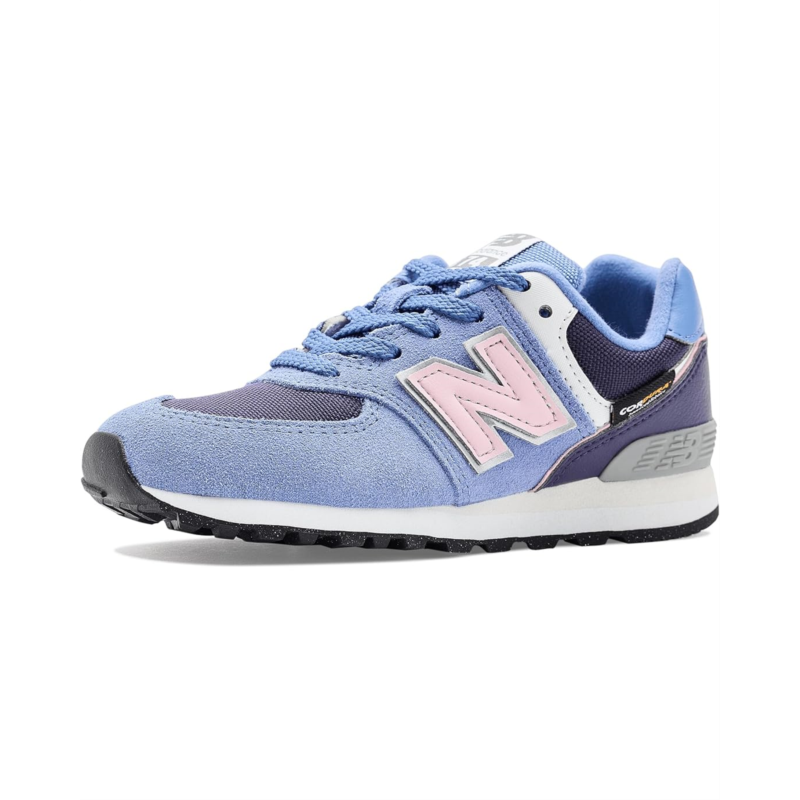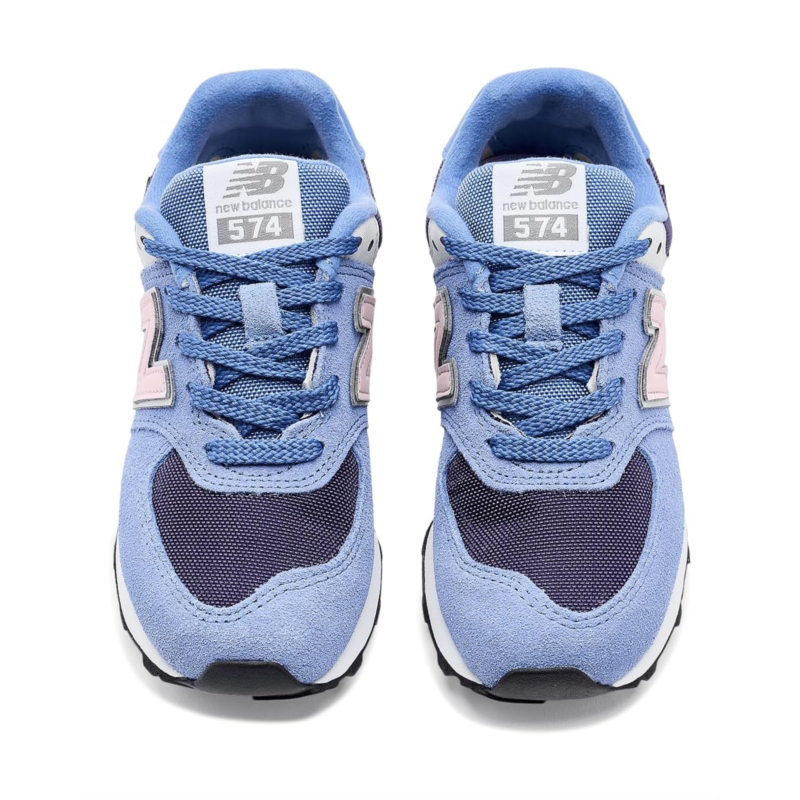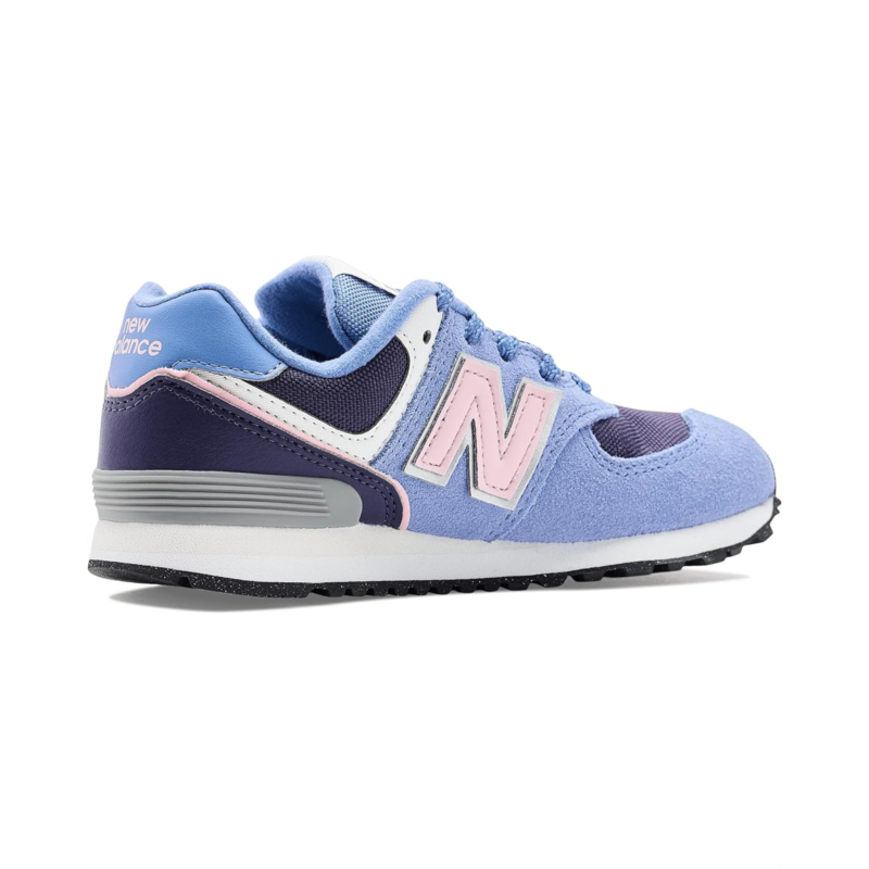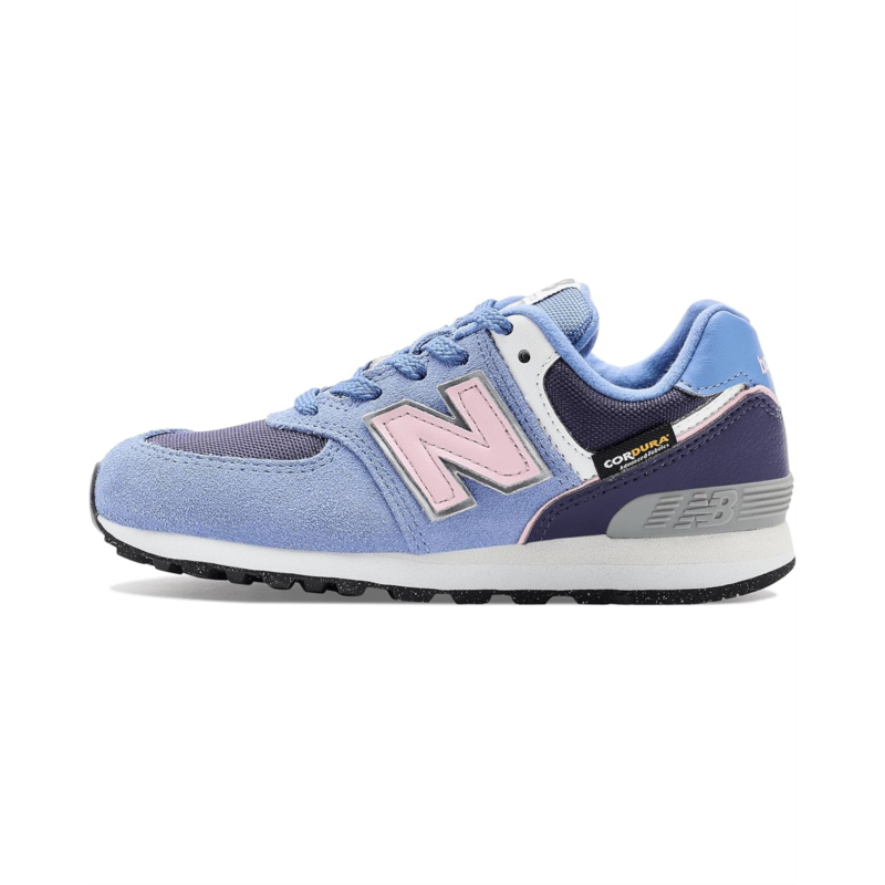 - The New Balance Kids 574 shoes are designed as a reliable, all-purpose sneaker with a durable suede and mesh upper, lightweight EVA foam cushioning in the midsole and heel, and a rubber outsole for traction, offering kids a versatile option suitable for daily wear across school, play, and everyday activities.