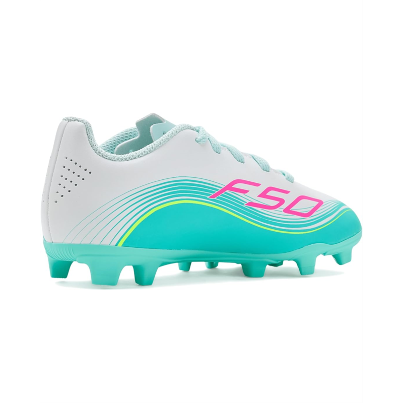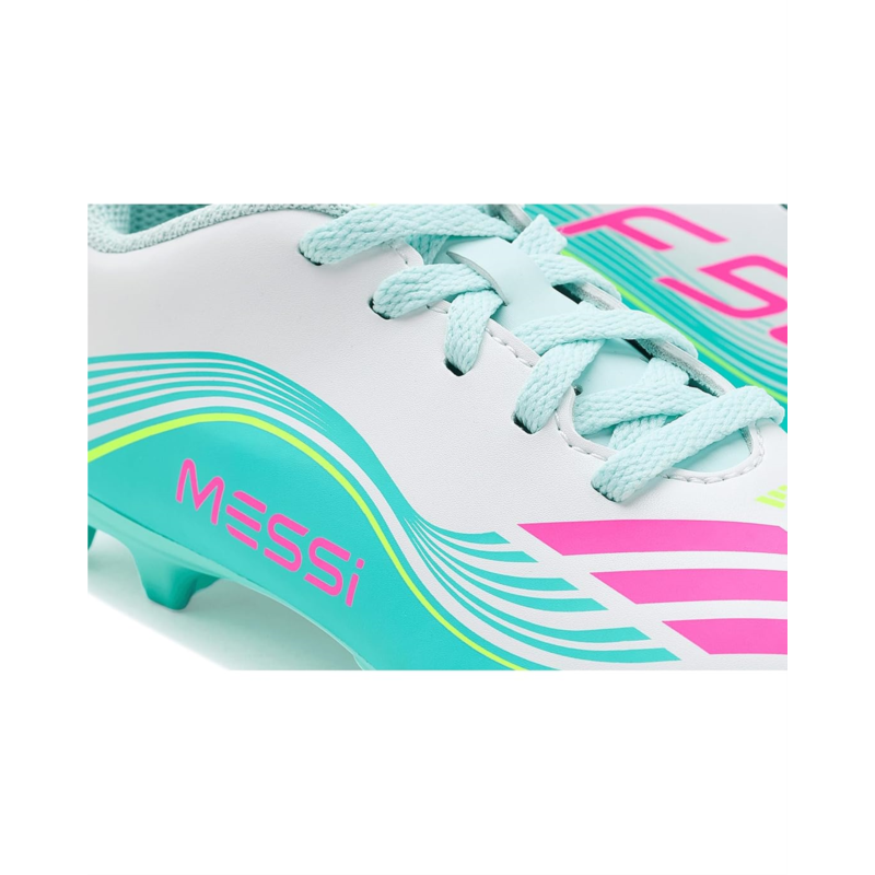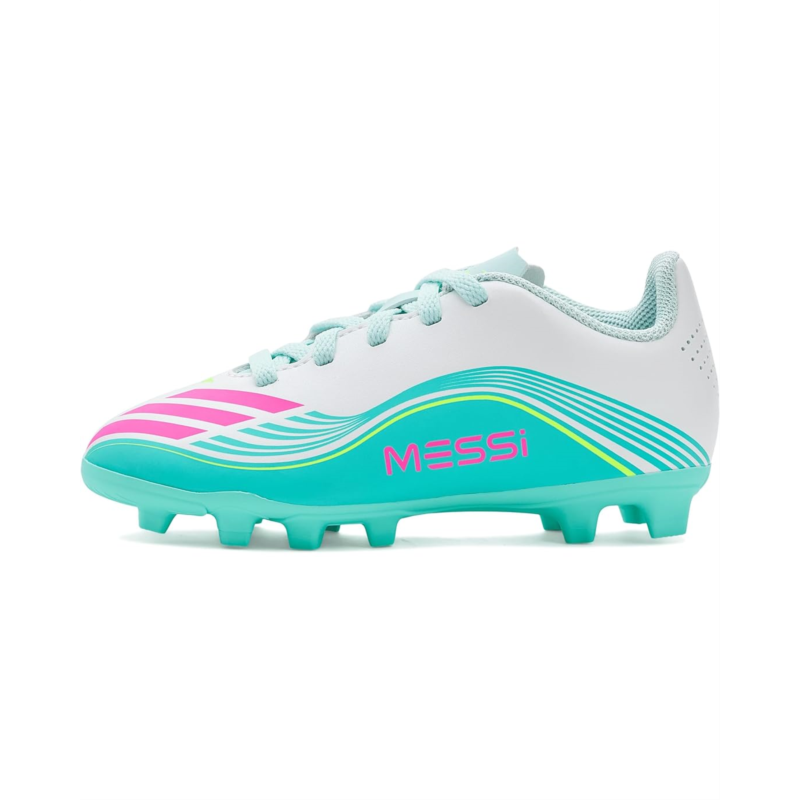 - Hit the ground in style and confidence wearing adidas Kids F50 MESSI Club Firm Ground / Multi Ground Soccer Cleats. Crafted with a rubber upper with lace-up details and signature three-stripe branding, these round-toe cleats show off sporty aesthetics.