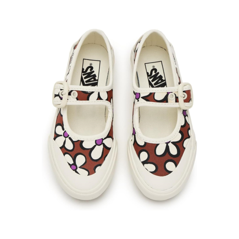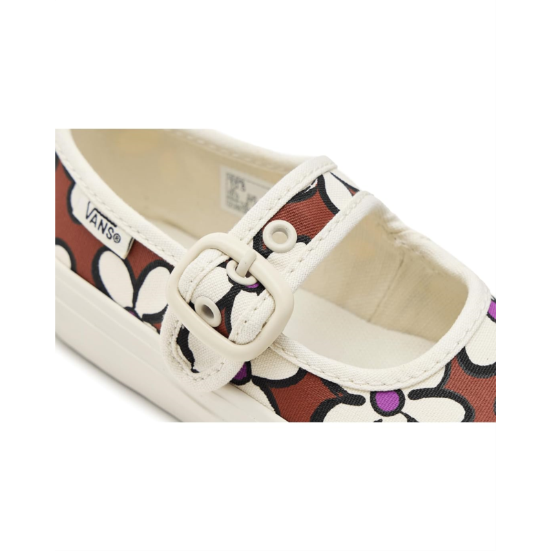 - The classic and casual Vans Kids Mary Jane Shoes are sure to add some extra style to your little ones outfits. These low-top shoes feature a Mary-Jane style silhouette and a sturdy canvas upper for a durable and classic look. They are made of a rubber insole and cotton lining. Their adjustable buckle closure offers a secure fit. These Mary-Jane shoes are perfect to complement your kids different outfits.