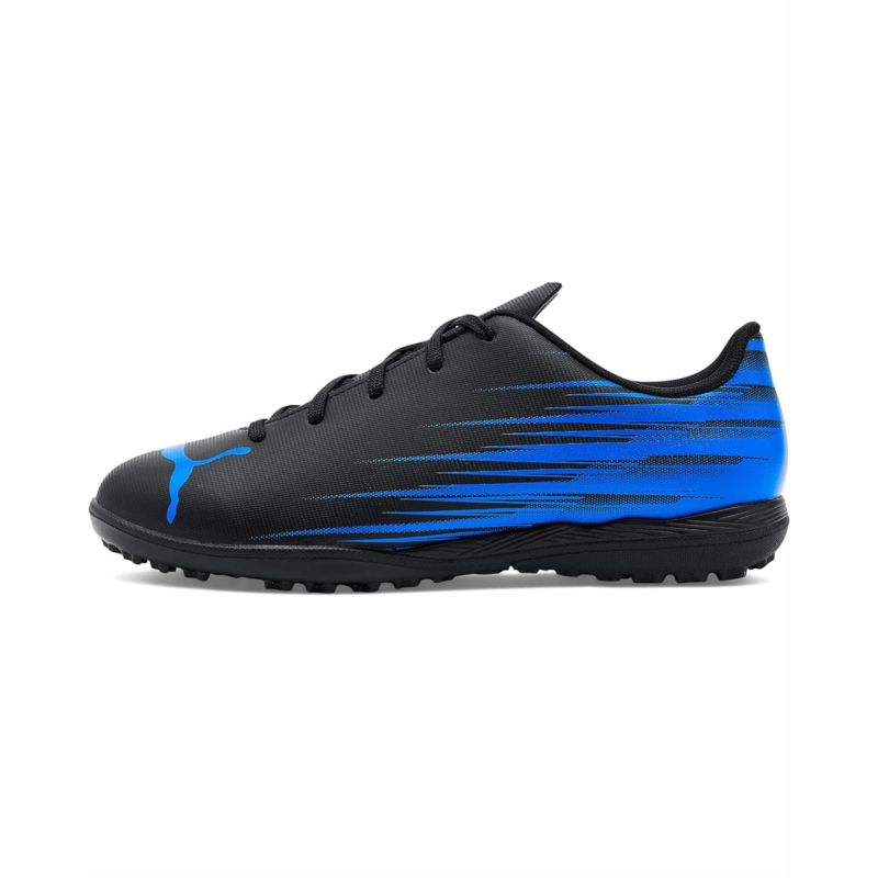 - The PUMA Kids Attacanto Turf Training Soccer Cleats are football boots, inspired by speed, made with a soft yet durable faux leather upper that features a fast and dynamic graphic print. They offer a standard fit, ensuring a comfortable and familiar feel for most. These lace-up shoes feature a soft polyester lining that shapes to the foot for comfort and longevity. The shoes upper is made with at least 20% recycled material. Their ethylene vinyl acetate insole offers a cushioned ride. Recommended for older kids between 8 and 16 years, these football cleats deliver superior comfort and performance.