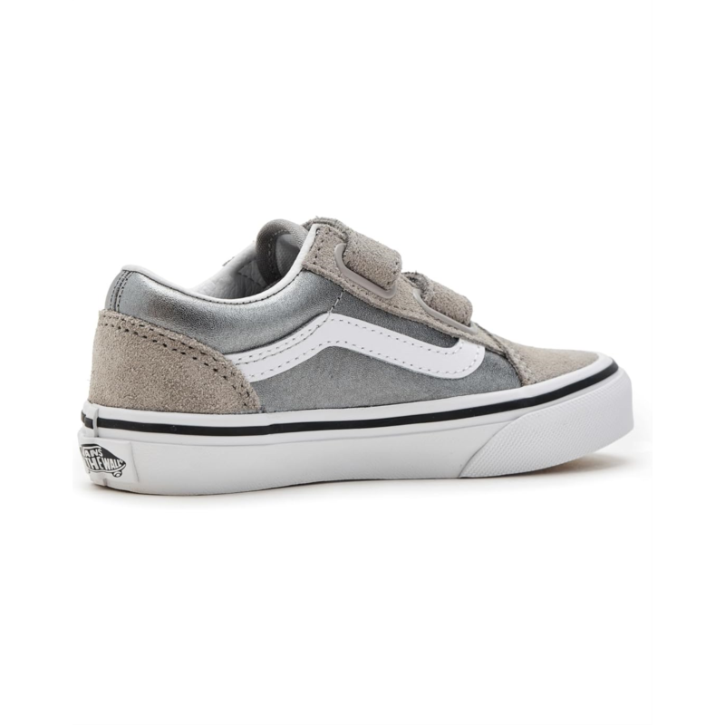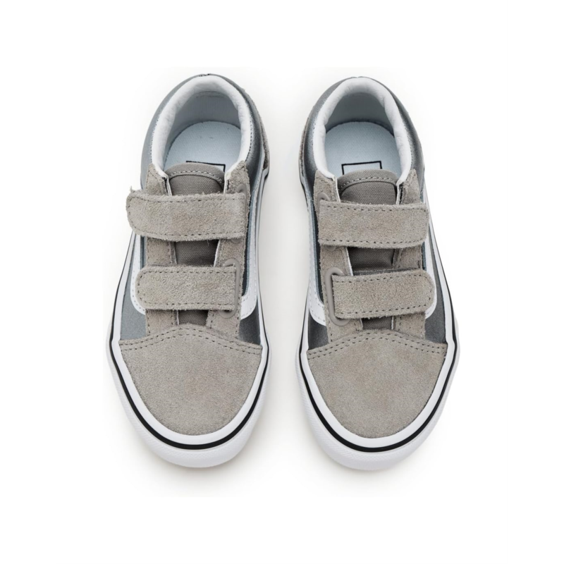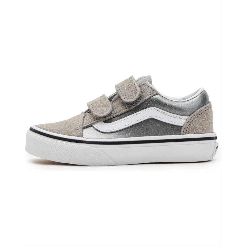 - These Vans Kids Old Skool V shoes are made for little ones who love to play and explore. The durable suede and canvas upper will keep up with all their adventures, while the cotton lining and rubber insole ensure comfort. With the iconic low-top silhouette and Sidestripe shoe design, these sneakers are a stylish addition to any kids wardrobe.