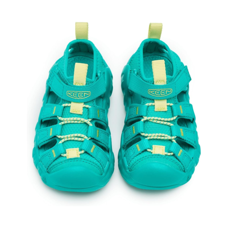 - The KEEN Kids Hyperport H2 Sandals are built for nonstop movement, from playground races to riverside discoveries. Designed with durable nylon webbing and a quick-dry lining, these sandals handle water, mud, and messes with ease, then clean up fast for the next outing. The adjustable bungee cords and pull-on design empower kids to slip them on and off independently, while the secure lace-lock bungee capture system keeps every step locked in. Inside, a cushioned Ethylene-vinyl acetate insole with high-rebound comfort delivers soft, resilient support all day long. The KEEN Original Fit offers generous toe space for natural movement, while the grippy rubber outsole with siped channels pushes water away for confident traction on wet surfaces.