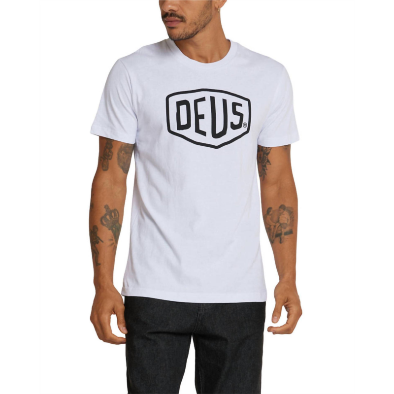 Standard-fit classic Deus Shield tee printed with original Deus artwork, made from 20/1s 190gsm organic cotton jersey.