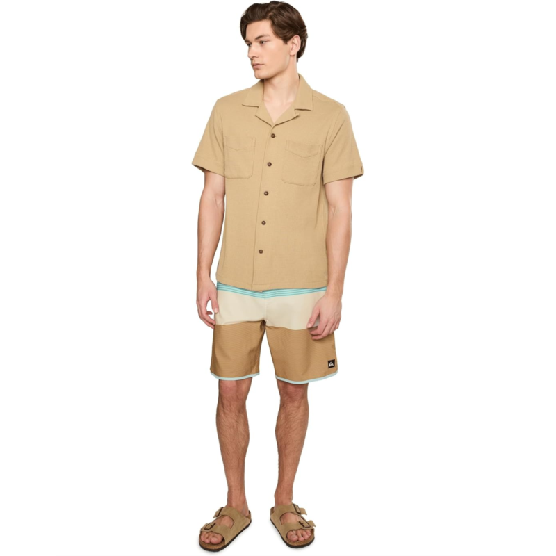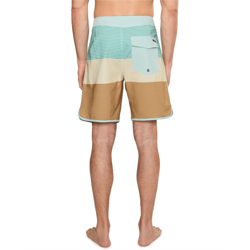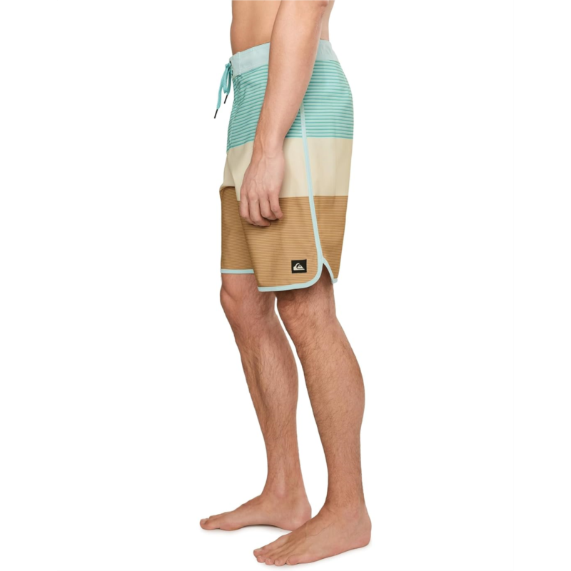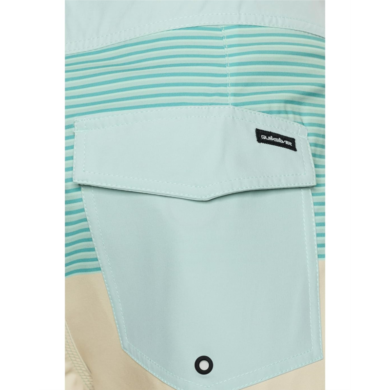 The primary materials that compose this product contain a minimum of 20 percent recycled content.- Dive deep into the water feeling absolutely chic and comfortable wearing Quiksilver Surfsilk Tijuana 19 BoardShorts. Remade with SURFSILK fabric, these are tough on the outside and durable on the inside. Plus, the PFC Free Hydrophobic Treatment with water-resistant technology levels up the comfort. The pull-on style, mid-length striped shorts feature a performance fly, fixed waist with a drawcord closure, hook-and-loop tape closure back pocket with flap, iconic mountain & wave logo, and key bungee cord inside pocket.