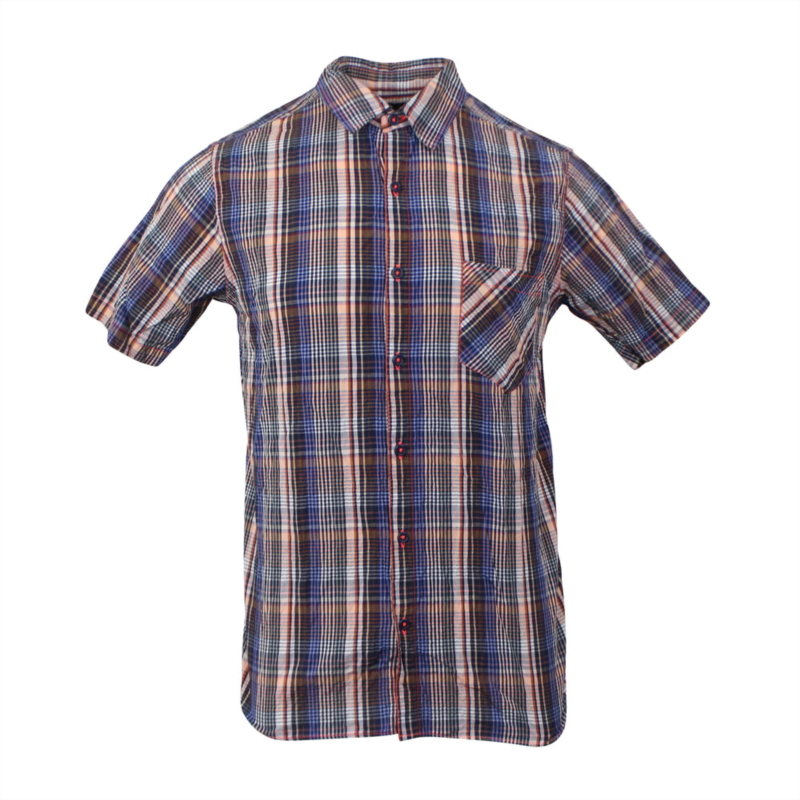 - Mens Peach And Brown Plaid Short Sleeve Shirt