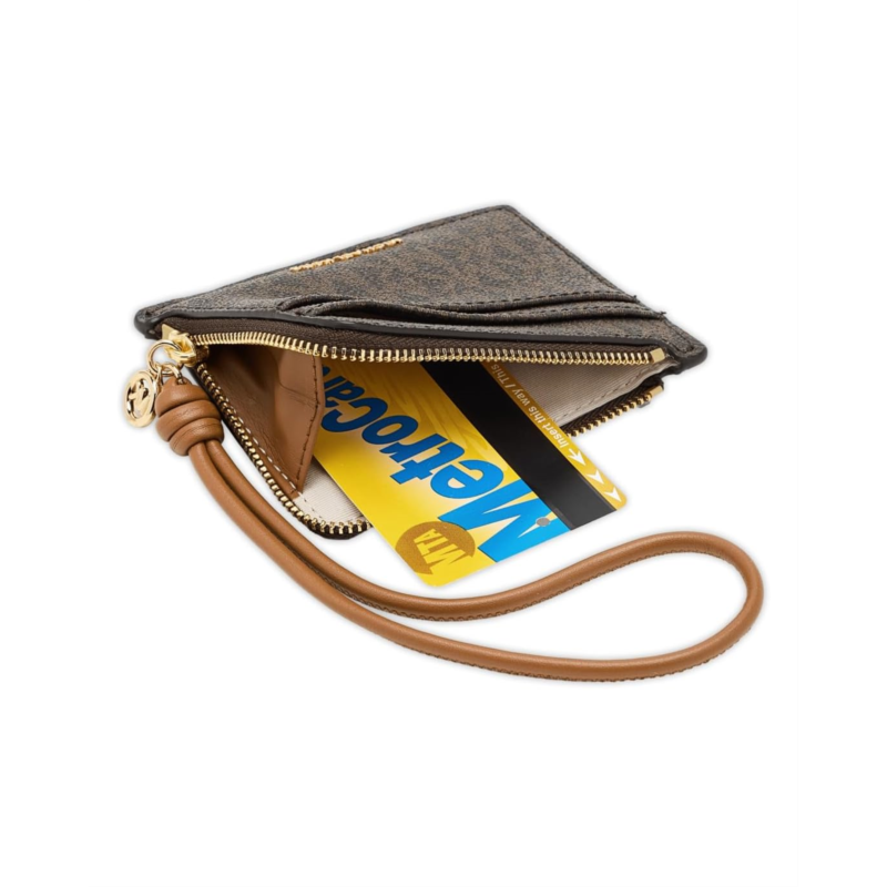 - The ultimate power move for your pocket, MICHAEL Michael Kors Jet Set Small Card Case Wristlet. Designed for the modern minimalist, this compact yet functional wristlet keeps your must-haves stylishly in check. Crafted from durable polyester with a smooth polyester lining, it offers a lightweight feel without compromising on polish. The secure zipper closure keeps your valuables safe, while the thoughtfully designed interior features one main compartment and four convenient pockets, perfect for cards, cash, and small essentials.