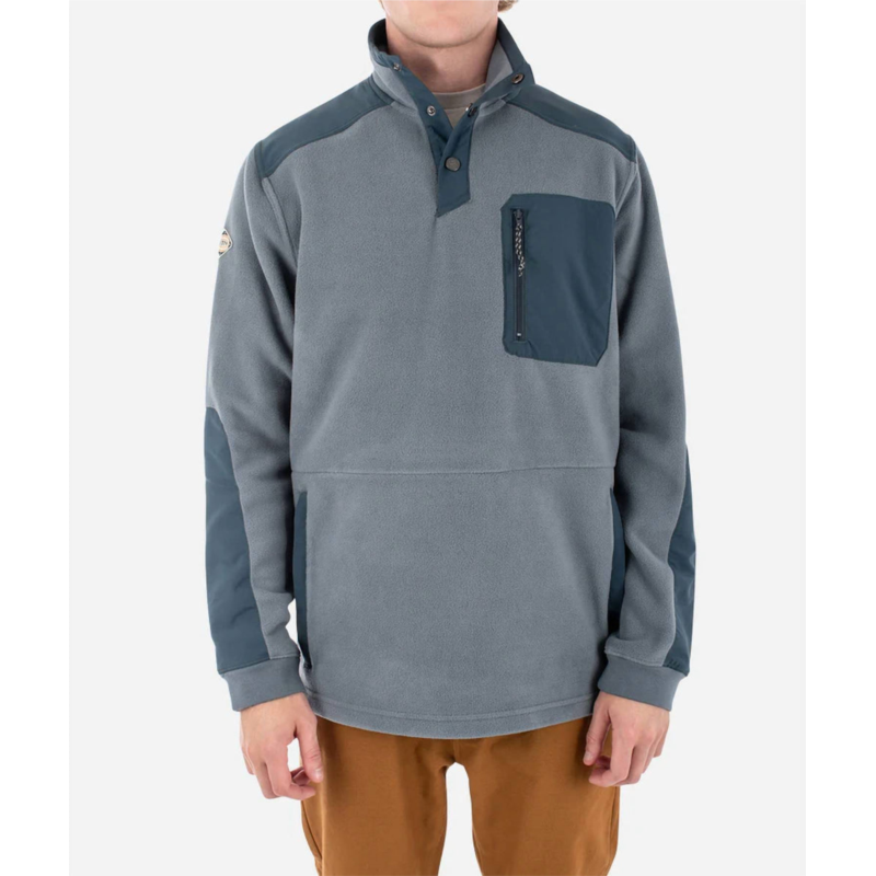 The Mock-Neck Polar Fleece Jacket features a front zipper patch pocket and a cozy kangaroo pocket, offering both style and functionality for cold weather. 100% Recycled Polyester.