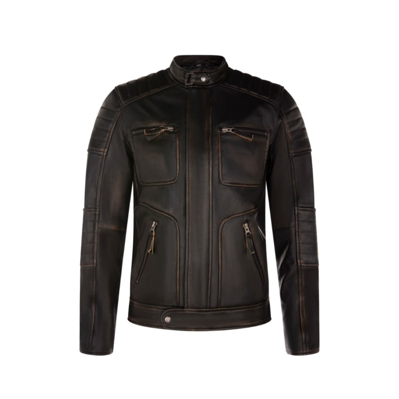 The crowning piece to a classic look, this vintage jacket is a cutting edge combination of elegance and functionality. This vintage jacket is thoughtfully crafted to achieve a slim fit design which leave you feeling confident and looking timeless. Our jacket is made of our bestselling premium leather and furnished with hand polished silver hardware, which is both weather and rustproof, resulting in a dependable jacket which is built to last. The jacket is ornately finished, introducing sleek features such as quilted detailing in the shoulders and a ribbed design on the forearms. The interior is integrated with premium satin for a luxurious and comfortable feel. The jacket lining also features ergonomic compartments ideal for mobiles, wallets, cards etc. making the jacket a functional powerhouse. An extra four zip pockets offer additional storage, to ensure everything stays on hand in your busy day to day. This vintage leather jacket rounds out any outfit, and is this seasons must have for any occasion from the late-night adventures to the daytime outings. 100% premium ultra-soft nappa leather. Premium Polyester blend lining Hand polished metal hardware. weather and rustproof. Concealed front zip feature 4 outer functional zip pockets, 2 inner zip phone pockets. Premium handwoven labels.