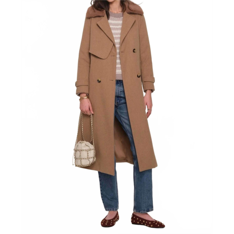 [US] Heartloom ross coat with faux fur collar in beige