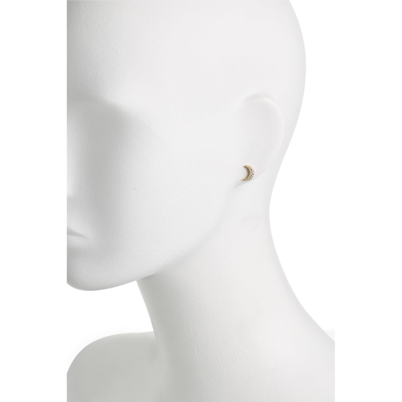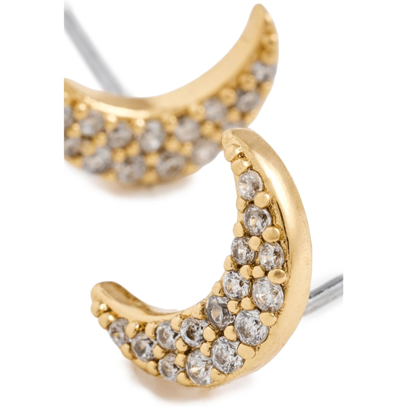 - The Kate Spade New York You''re A Gem Pave Moon Studs are whimsical, celestial-inspired earrings that add a touch of sparkle to everyday looks. Designed in a crescent moon shape, they are embellished with cubic zirconia crystals for a shimmering finish. Crafted with plated metal and a push-back closure, these studs are lightweight and easy to wear.