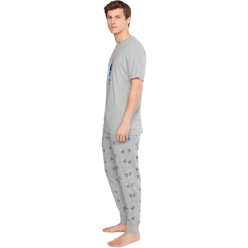 - Designed for uninterrupted rest, this Polo Ralph Lauren Shorts Sleeve Crew & Pajama Joggers Bear sleep set features soft, breathable fabric that keeps you cool and comfortable all night long. The relaxed fit allows easy movement for deeper, better sleep. It features a crew neckline t-shirt with short sleeves, straight hem and bear print on the front. This set comes with an ankle-length jogger featuring adjustable drawcord waistband, two side hand pockets, and allover bear print.