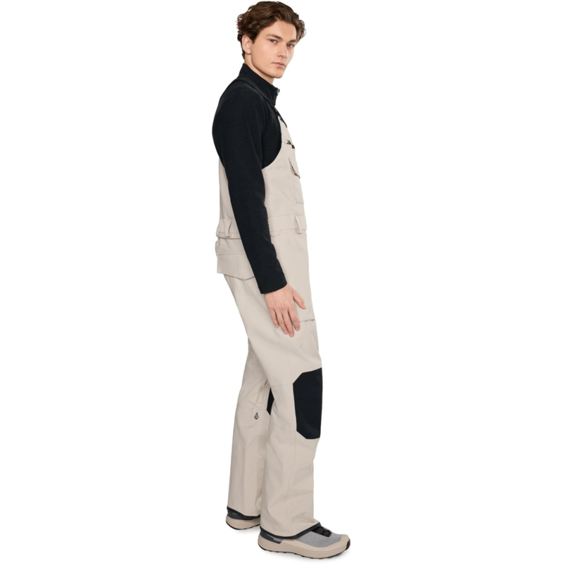 - Peak performance and park-ready vibes in the Volcom Snow Roan Bib Overall. Designed with a V-Science breathable lining system and fully taped seams, it keeps moisture out while letting heat escape, so you stay dry and balanced all day long. The relaxed fit with a medium rise offers easy layering without restricting movement, while Zip Tech pant-to-jacket interface seals out snow on deep powder days. Thoughtful details like neoprene jersey side waists, adjustable elasticized suspenders, and an easy-entry side zipper deliver a dialed-in fit with zero hassle. Mesh-lined zippered vents regulate temperature on high-output runs, while triple reinforced rise, reinforced back hem, and stone butt patch add serious durability. Finished with brushed tricot handwarmer pockets, functional fly, chest and back pockets, and a boot gaiter with lace hook, this bib is made to ride hard and last longer.