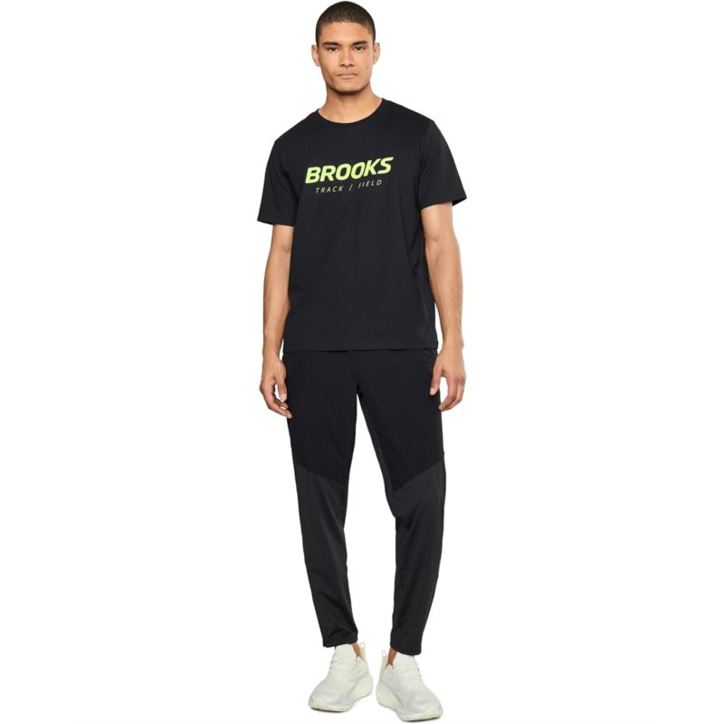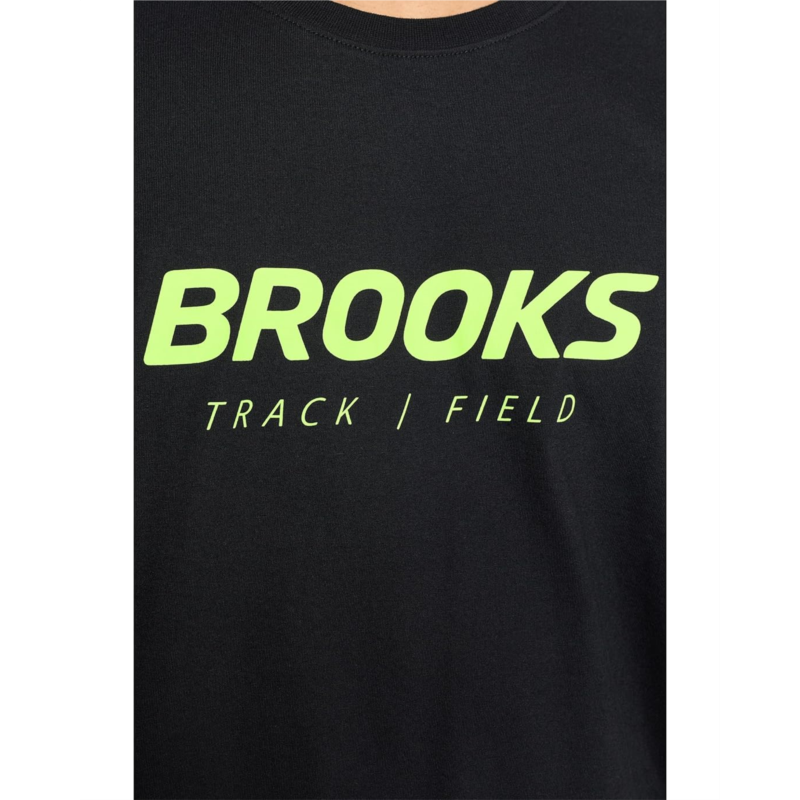 - The Brooks Graphic Short Sleeve Tee combines everyday comfort with athletic heritage style. It has a crew neckline, short sleeves, and a straight hem.