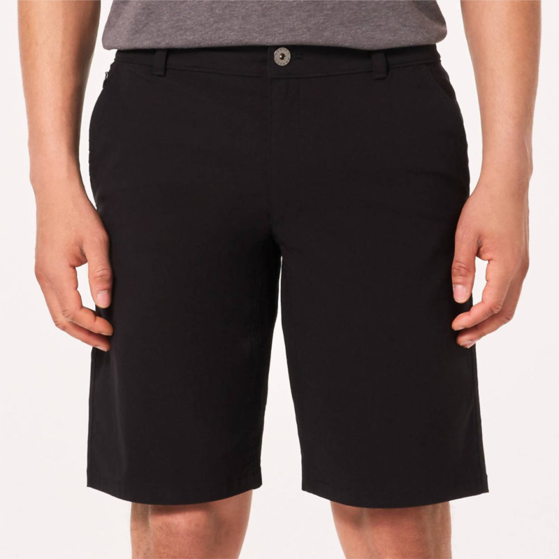Embrace the minimalist trend with the Oakley Perf 5 Utility 2.0 Shorts for men in striking Blackout. Crafted from durable polyester, these solid, flat-front shorts are perfect for summer vacations, offering versatile style and practicality with functional pockets. Closure - Button closure. Designed for easy, casual wear, these shorts are an essential addition to any warm-weather wardrobe.