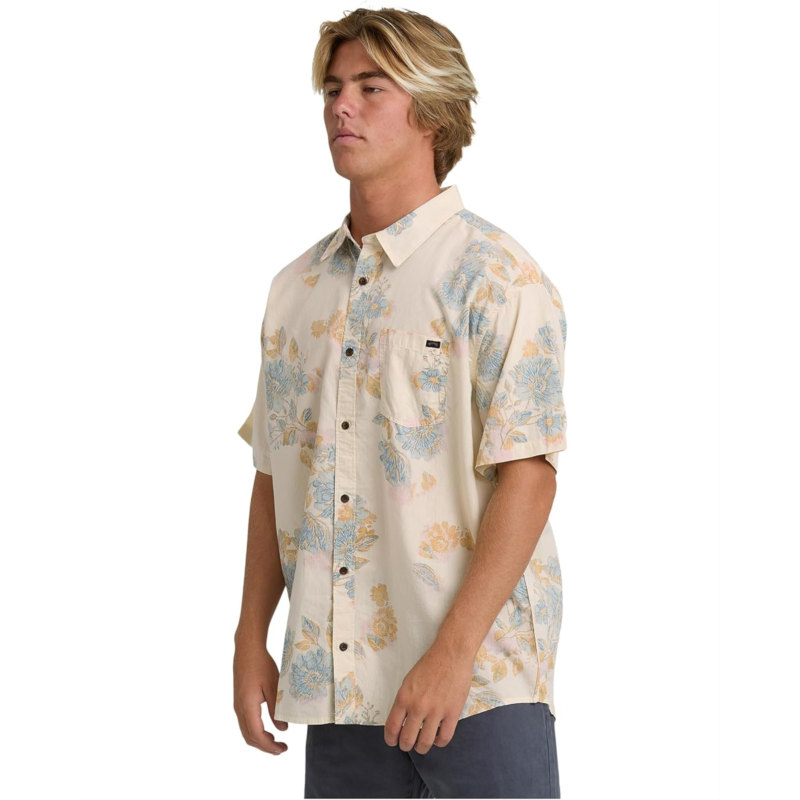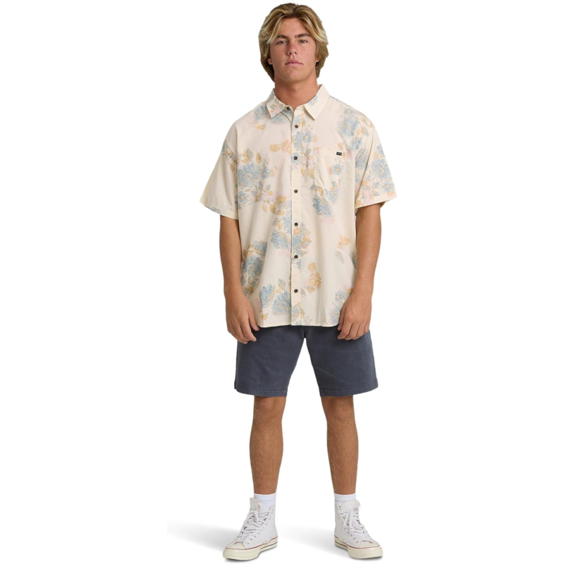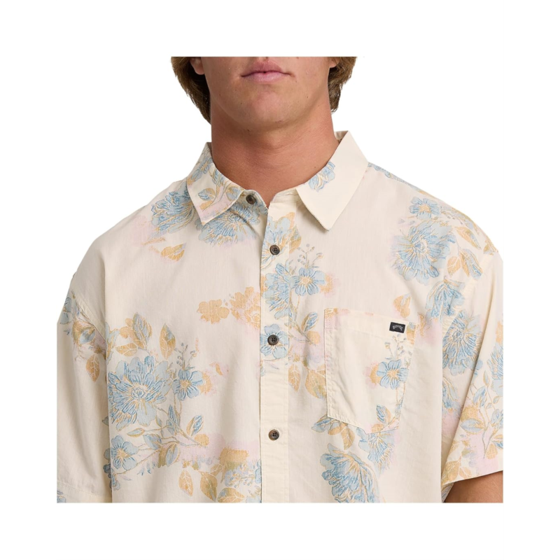 - Enjoy your Sunday mood wearing Billabong Sundays Short Sleeve, designed in a regular-fit silhouette with short sleeves. The collared shirt features a button-front closure, a patch pocket on the left chest, a beautiful floral print allover, and a straight hem.