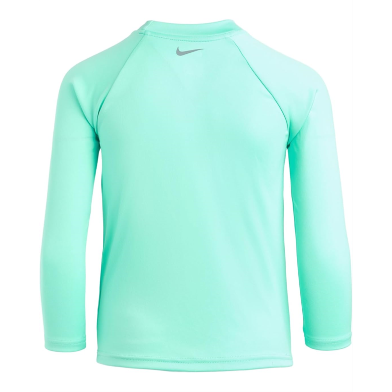 - Let your little swimmer dive into fun styling the Nike Kids Long Sleeve Bubble Hydroguard Top & 5 Volley Short Set, designed for style, protection, and all-day comfort. The long-sleeve Hydroguard top features an easy pull-on design that makes getting ready for pool or beach time effortless. Built with UPF 40+ sun protection, it helps shield young skin from harmful rays while they enjoy hours of outdoor play. The fabric also features Nike Dri-FIT technology, which works to wick away moisture and keep kids cool, dry, and comfortable. A bold Nike Bubble graphic at the center chest adds sporty flair that stands out. Paired with the top is a durable 5 volley short crafted from chlorine-resistant fabric, perfect for long swim sessions. The stretch waistband ensures a secure, flexible fit, while the built-in brief offers extra comfort and support. Finished with an embroidered Swoosh on the hem, this set delivers iconic Nike style made for endless water adventures.