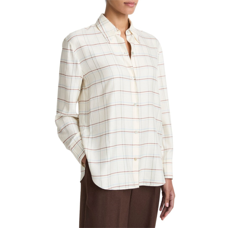 Vince checked plaid silk-blend shirt
