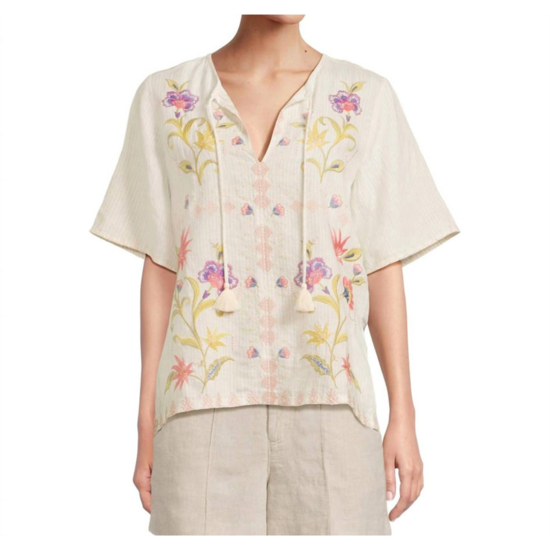 Johnny Was ruffle sleeve field blouse in beige
