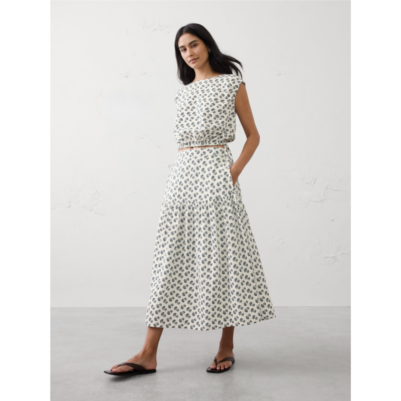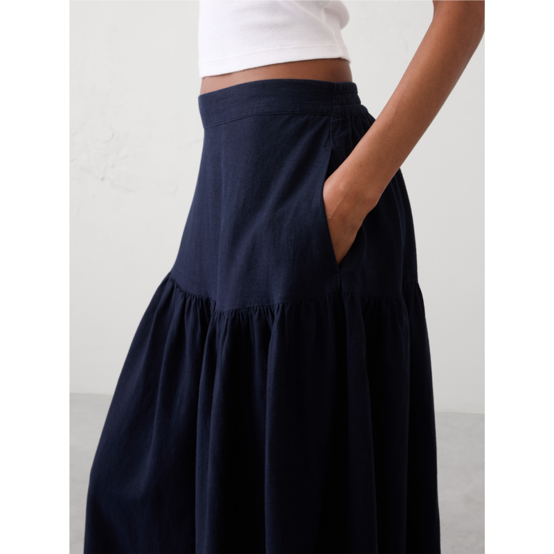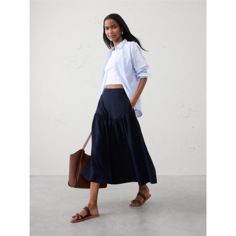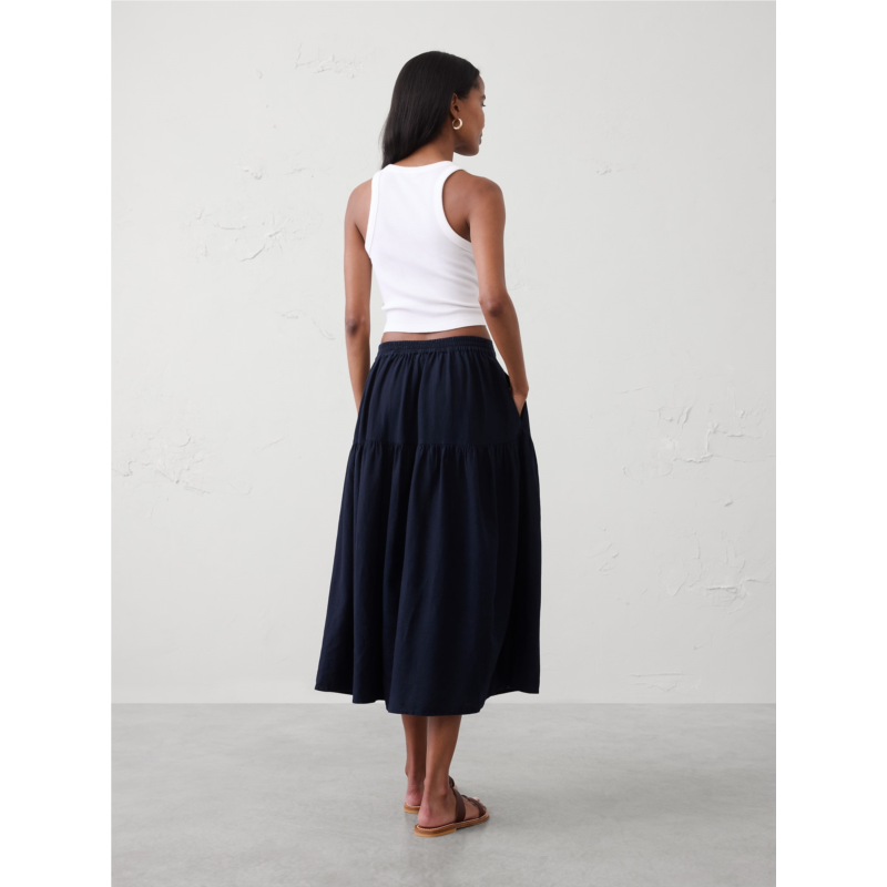 [US] bananarepublic Linen-Blend Tiered Midi Skirt