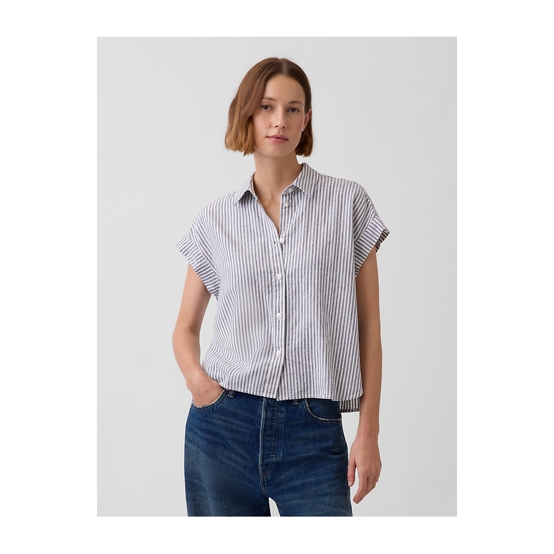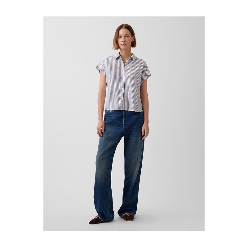 - Soft, heavyweight linen-blend button shirt. In an oversized fit and slightly cropped length.