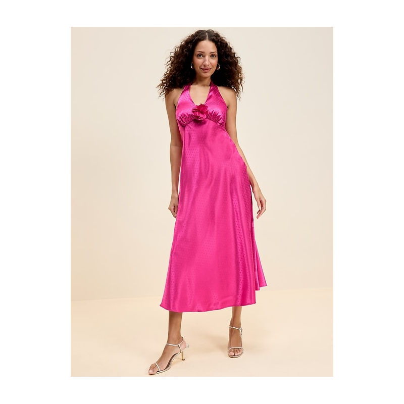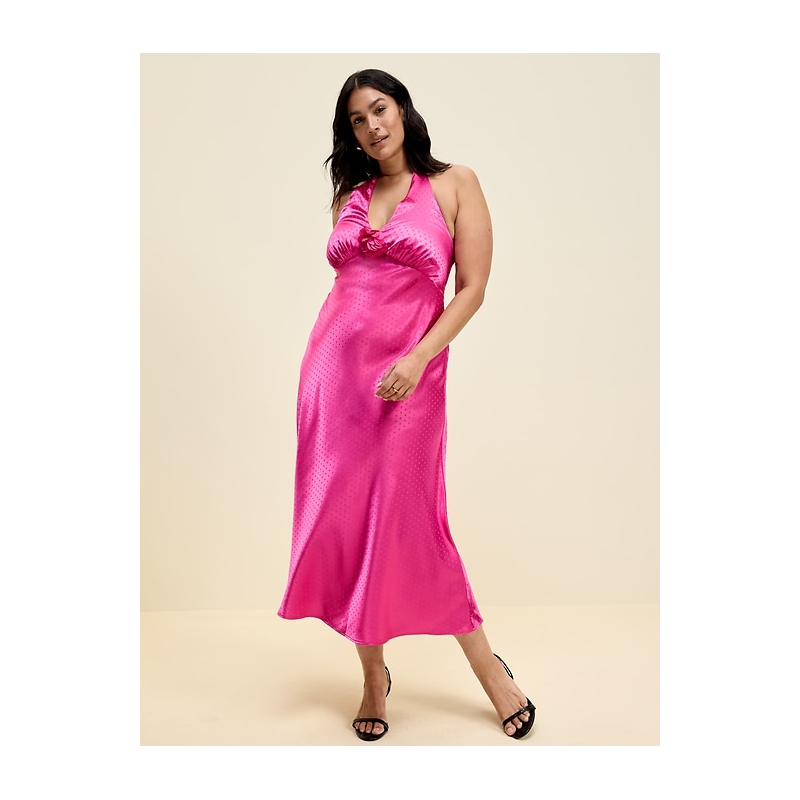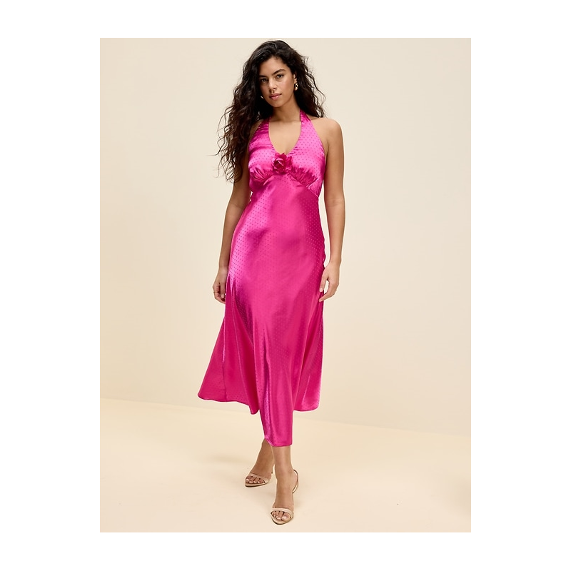 [US] The Occasion by Old Navy Fit and Flare Satin Halter Midi Dress