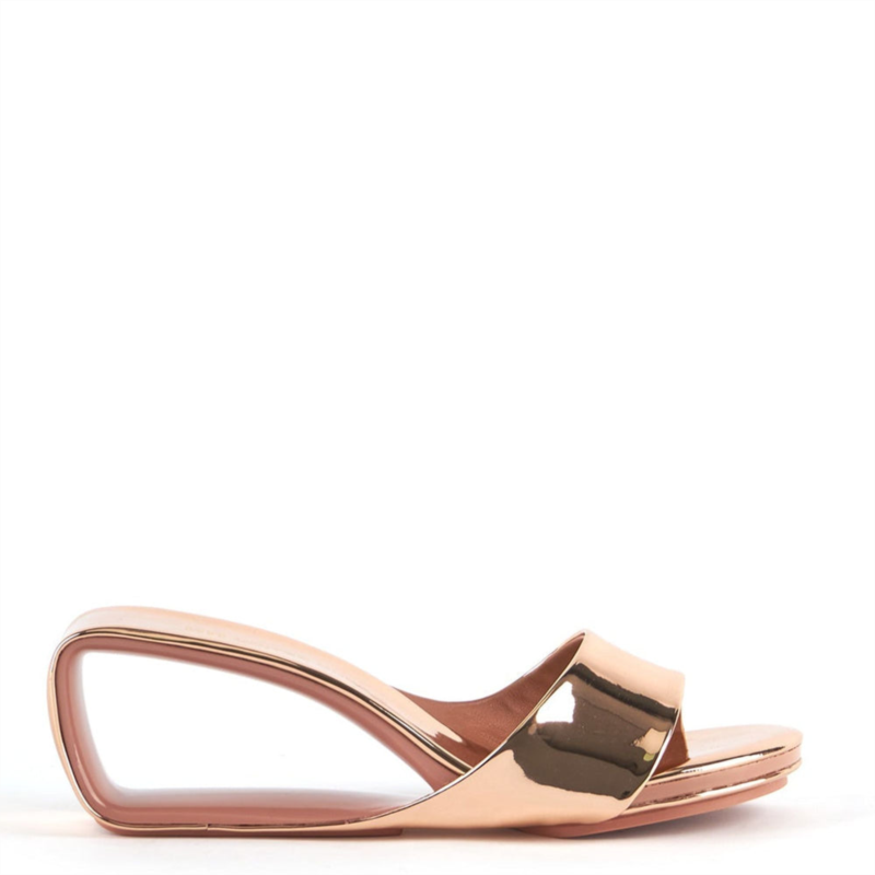 The Mobius Mid is a slip-on sandal with a hollow loop-shaped heel and a single band that forms the sole, heel, footbed, and upper of the shoe. The fiber-reinforced nylon heel is the strongest part of the shoe, while its open wedge shape keeps it incredibly light. United Nude''s launch product, the Mobius, was revealed in 2003 and has since become an icon in the world of design. The style was born from a conceptual development of the Mi¿½i¿½i¿½i¿½i¿½i¿½i¿½i¿½i¿½i¿½i¿½i¿½bius strip, a single-sided surface with no boundaries. Its distinct shape was inspired by transforming the frame of Mies van der Rohe''s Barcelona Chair into a single band, uniting the upper, sole, footbed and heel into one infinite piece. Standard Fit Heel Height - 65mm/2.6in Nappa leather or metallic TPU upper Leather lining Leather footbed Fiber-reinforced nylon heel Rubber outsole