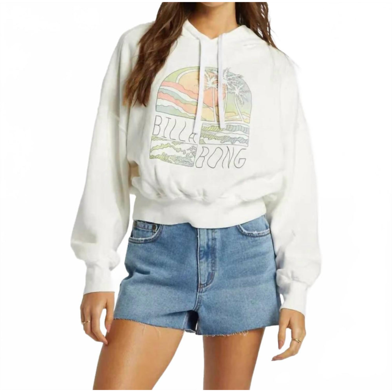 Whether youre running around town or lounging at home, this sweatshirt works for both.Elevate your casual wardrobe with the All Time Fleece Pullover Hoodie from Billabong, part of their Sunshine Diaries collection. This Salt Crystal sweatshirt features long sleeves and a cozy hooded neck, perfect for those chilly spring evenings. Made of a cotton polyester blend (80% Cotton, 20% Polyester), it boasts a boxy cropped fit with assorted graphics for a laid-back, minimalist vibe. Closure - Pull on. Care - Machine wash for easy maintenance.