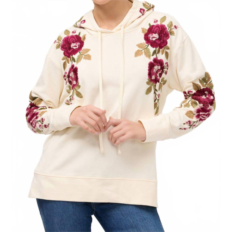 Cozy fabric, impeccable design - Meet the sweatshirt that youll never want to take off.Discover comfort and style with the Mehdi Hooded Sweatshirt by Johnny Was, now available in an inviting Shell hue. Crafted from soft cotton, this long-sleeve hoodie features a playful floral pattern, adding charm to any casual day. Closure - Easy pull-on design, perfect for travel and fall outings. Care - Machine wash, tumble dry.