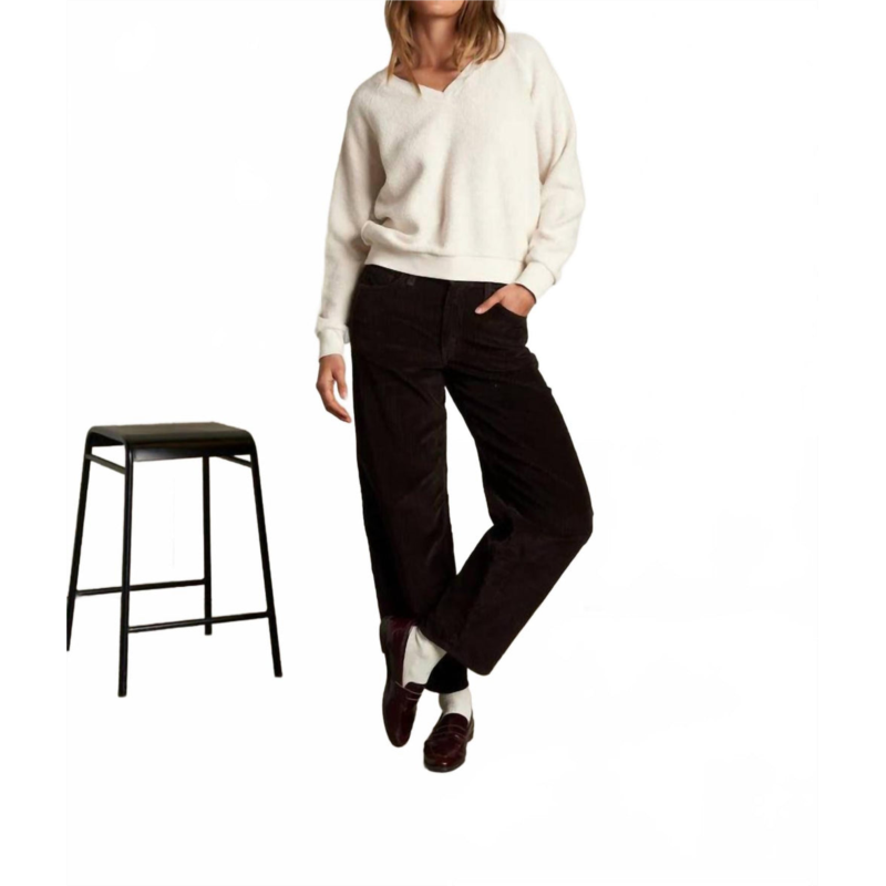 Perfectwhitetee zuri reverse fleece v neck sweatshirt in sugar