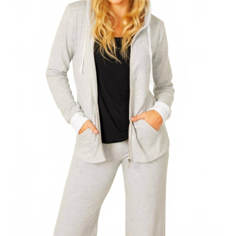 [US] French kyss detail zip up hoodie in silver