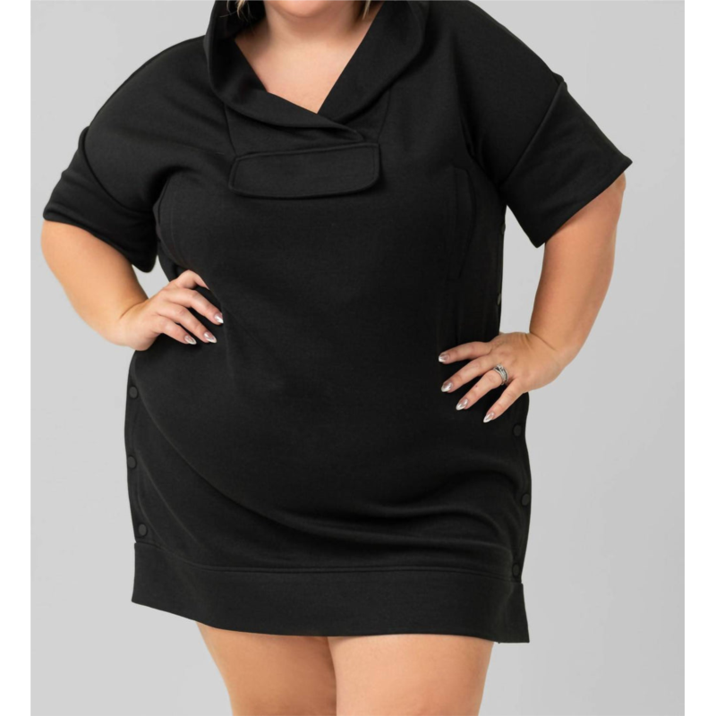Cooler temps call for layering and we love this adorable sweatshirt for all the obvious reasons.Elevate your casual wardrobe with this Short Sleeve Hoodie by the Spanish designer Psophia, a minimalist piece perfect for various occasions. This solid black oversized hoodie features a relaxed, plus-size fit, complete with a hooded neckline and convenient pull-on design. Perfect styled with skinny jeans or worn as a standalone casual dress. Made with care, perfect for machine washing.