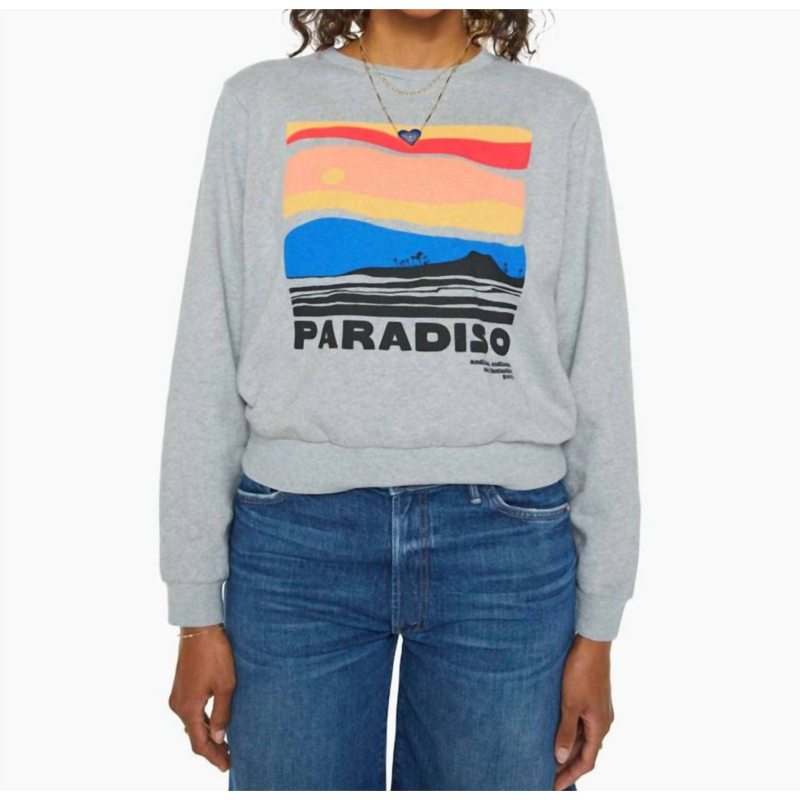 Cozy fabric, impeccable design - Meet the sweatshirt that youll never want to take off.Introducing the Womens The Camper Sweatshirt by Mother, a vibrant piece perfect for your spring streetwear collection. This paradiso-colored sweatshirt features a fun graphic pattern and a classic crewneck design. The long sleeves provide comfort, while the pull-on closure ensures easy wear. Ideal for vacation wear, this piece seamlessly combines style and convenience.