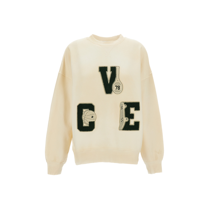 Golden Goose introduces a boxy-fit crewneck sweatshirt made from high-quality cotton, featuring a distinctive vintage-effect treatment. The front showcases delightful patch appliques that spell LOVE, adding a playful touch to its refined look. Iconic star studs on the back collar enhance its casual-chic vibe, making it ideal for relaxed outings. - Boxy-fit design - Crafted from premium cotton - Vintage-effect treatment - Patch appliques spelling LOVE - Star studs on back collar - Casual-chic style