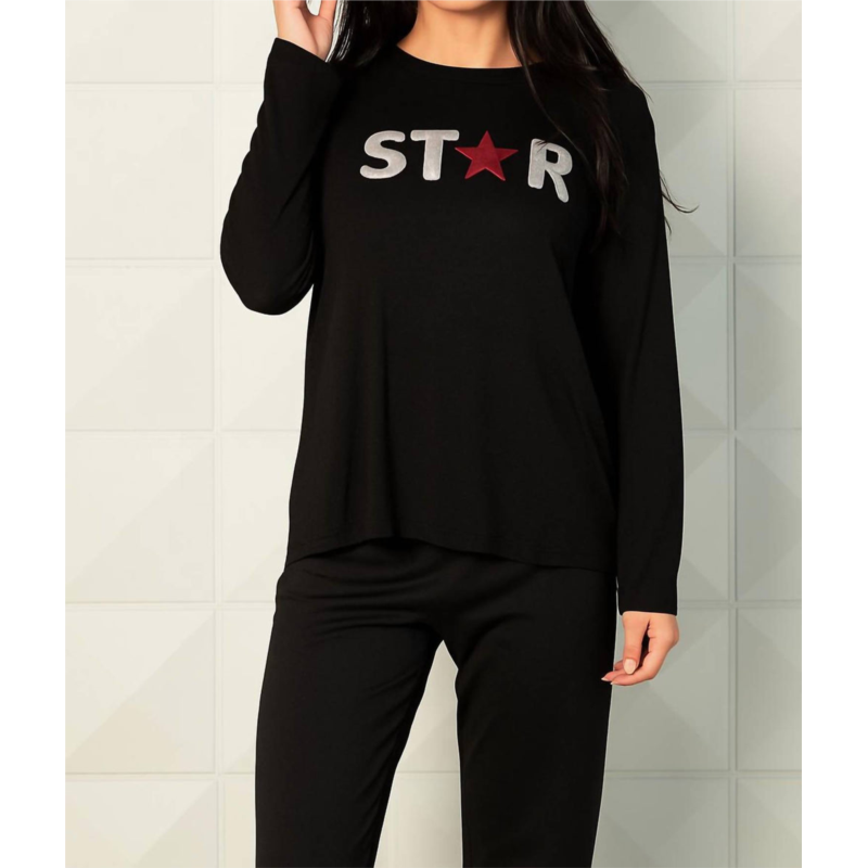 Cozy fabric, impeccable design - Meet the sweatshirt that you''ll never want to take off.Elevate your fall wardrobe with the French Kyss Star Crewneck Sweatshirt, a chic choice for New Year''s Eve and travel alike. This long sleeve sweatshirt in striking black and wine combines a graphic star detail with the comfort of a viscose blend, featuring 79% Viscose, 18% Polyester, and 3% Elastane. Designed to hit at the hips, this imported piece offers versatile styling without pockets and a pull-on closure for easy wear. Care for your garment with a delicate hand wash or opt for dry cleaning to maintain its quality.