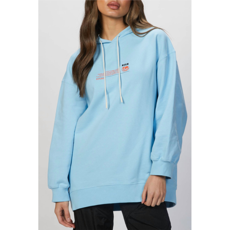 [US] MSGM graphic-print drawstring hoodie in light blue